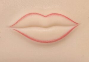 ライン技術を用いて輪郭のゆがみを整えながら唇の色のくすみをカバーしてリップを際立たせる方法です。