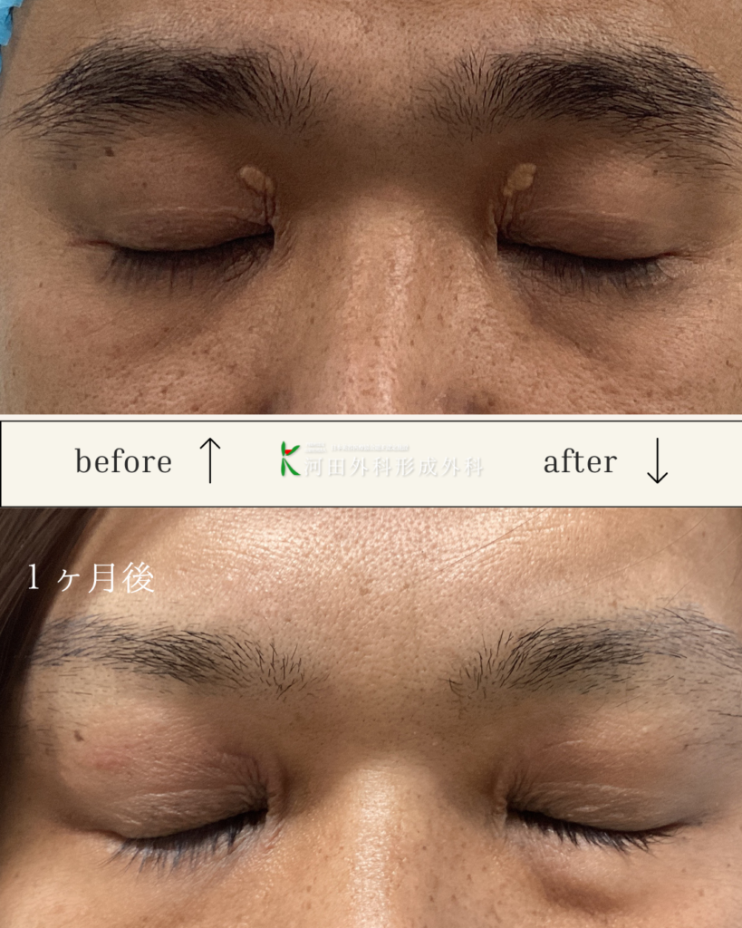 まぶたにできる黄色のふくらみで、皮膚にコレステロールが沈着してできる黄色の皮膚腫瘍です。小さいものはレーザーで治療できますが、大きなものは手術で切除します。