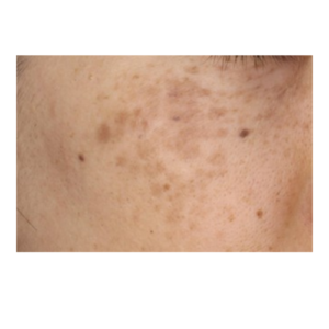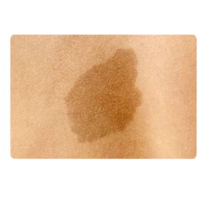 老人性色素班とは、老化と紫外線が原因で、シミの中で1番多いのがこのタイプです。表皮細胞のターンオーバーが正常に働かなくなるためにできると考えられています。薄茶色で、比較的輪郭がハッキリしているシミです。