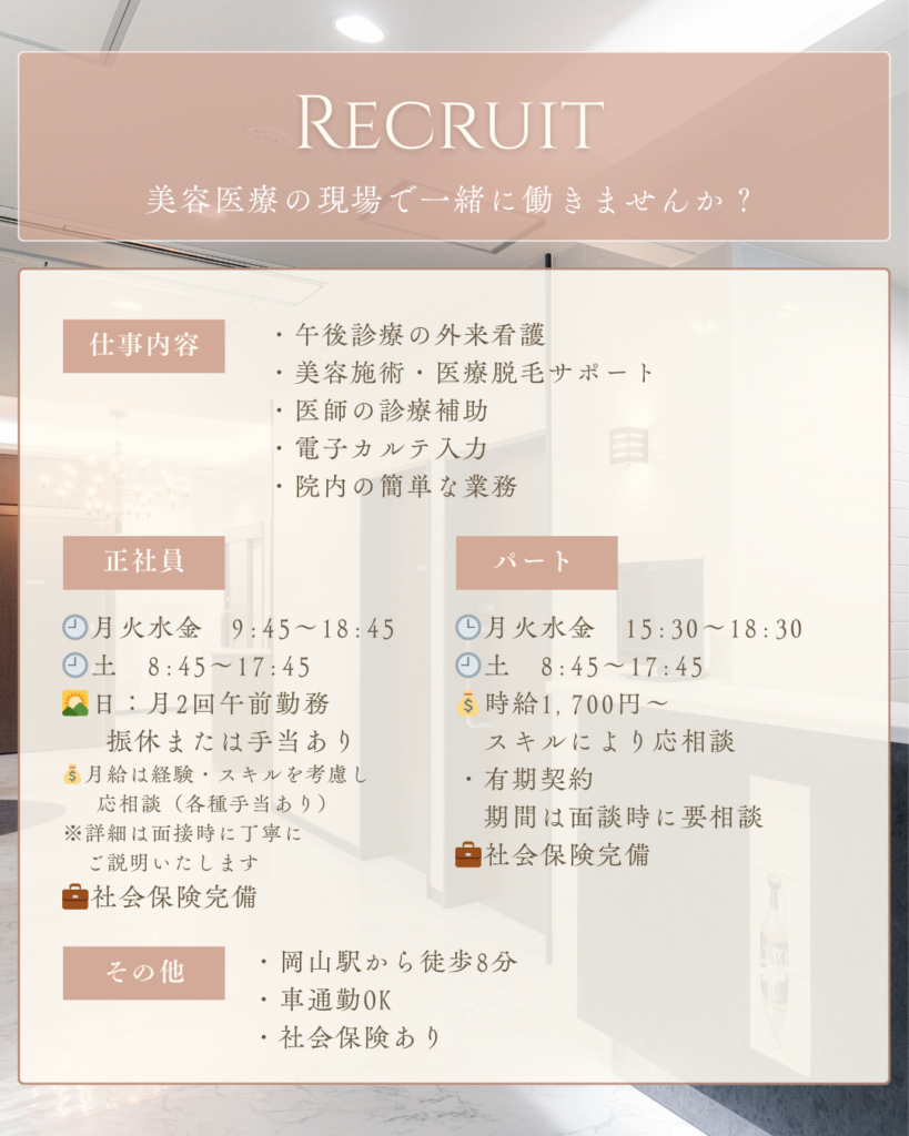 当院は 岡山駅から徒歩8分 と通勤しやすい立地です。