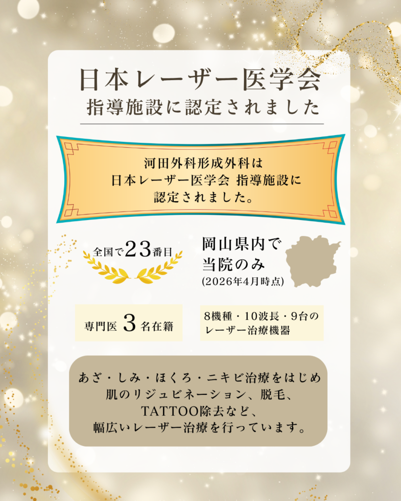 このたび、河田外科形成外科は日本レーザー医学会 指導施設に認定されました。